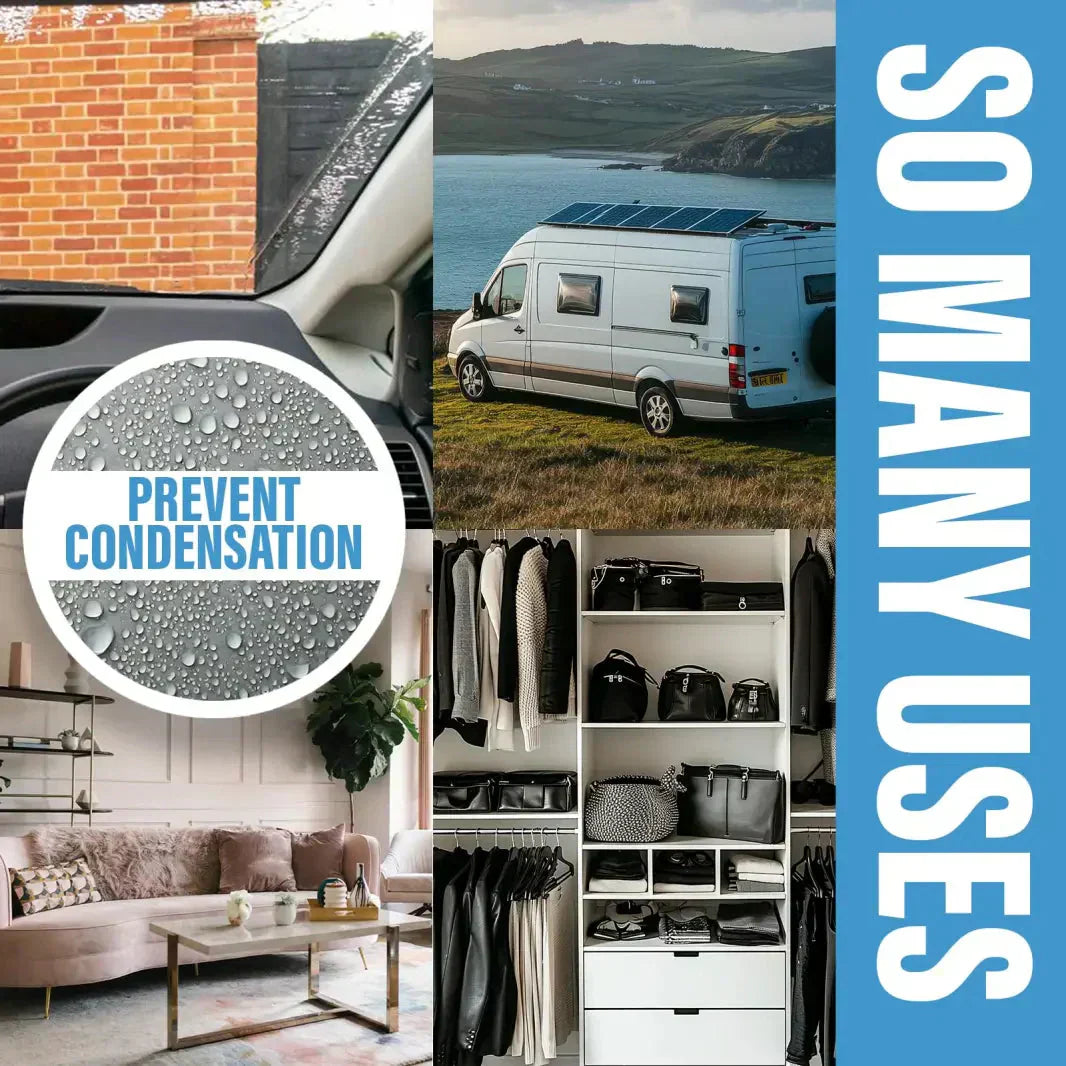 Der Luftentfeuchter eignet sich ideal für den ganzjährigen Einsatz in Autos, Wohnwagen oder Wohnmobilen, da er der Luft kontinuierlich überschüssige Feuchtigkeit entzieht. Er zieht die Feuchtigkeit wie ein Magnet aus dem Fahrzeuginnenraum und beugt so Rost, Schimmel, Stockflecken und unangenehmen Gerüchen vor. Dadurch sorgt er für ein angenehmes Klima im Fahrzeug.