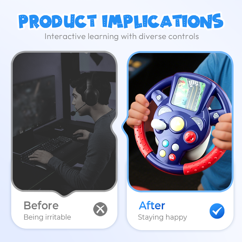 INTERAKTIVE FAHRSIMULATION-Perfekt, um Kindern das Fahren und den Transport näher zu bringen. Das Mini Steering Magic Wheel bietet ein fesselndes, praktisches Erlebnis, das das echte Fahren nachahmt. Diese unterhaltsame und zugleich lehrreiche Aktivität hilft Kindern, schon in jungen Jahren ein Verständnis für Verkehr, Sicherheit und Fahrzeugkontrolle zu entwickeln.