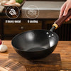 HANDGESCHMIEDERTER EISENWOK - Dieser Wok wird aus hochwertigem Eisenerz nach traditionellen Verfahren hergestellt und bei hohen Temperaturen geschmiedet, um Verunreinigungen zu entfernen. Die handgehämmerte Oberfläche erhöht die Haltbarkeit und macht ihn resistent gegen Kratzer und Korrosion, während gleichzeitig sichergestellt wird, dass keine Schwermetalle in Ihre Speisen gelangen.