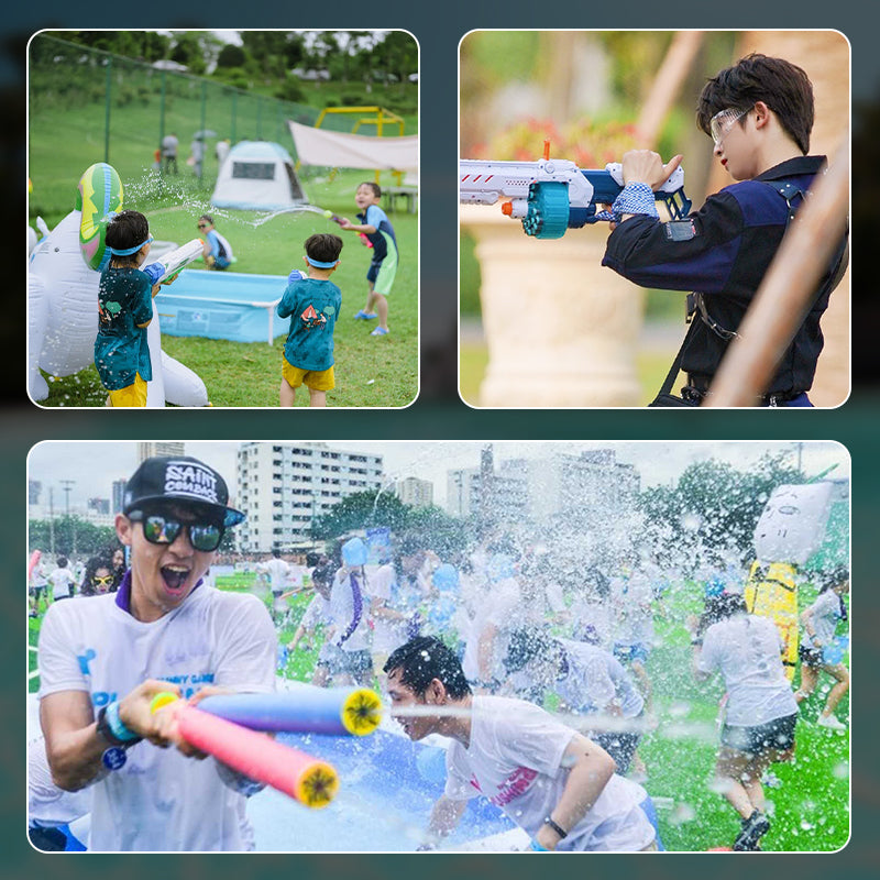 BIS ZU 8M REICHWEITE – Erlebe kraftvollen Wasserantrieb mit einer Reichweite von bis zu 8 Metern, perfekt für große Spielbereiche. Der Elektromotor sorgt für einen kontinuierlichen Hochdruck-Wasserstrahl, ideal für Wasserschlachten oder Outdoor-Spiele.