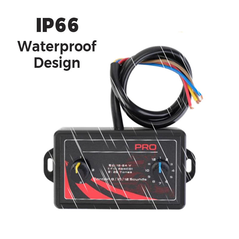 DUAL-KNOB-PRĂZISIONSTUNING- Ausgestattet mit zwei unabhĂ€ngigen Reglern - einer zur Einstellung der Klanggeschwindigkeit, der andere fĂŒr den Rhythmus - ermöglicht eine prĂ€zise Anpassung der Huptöne an jedes Fahrszenario.