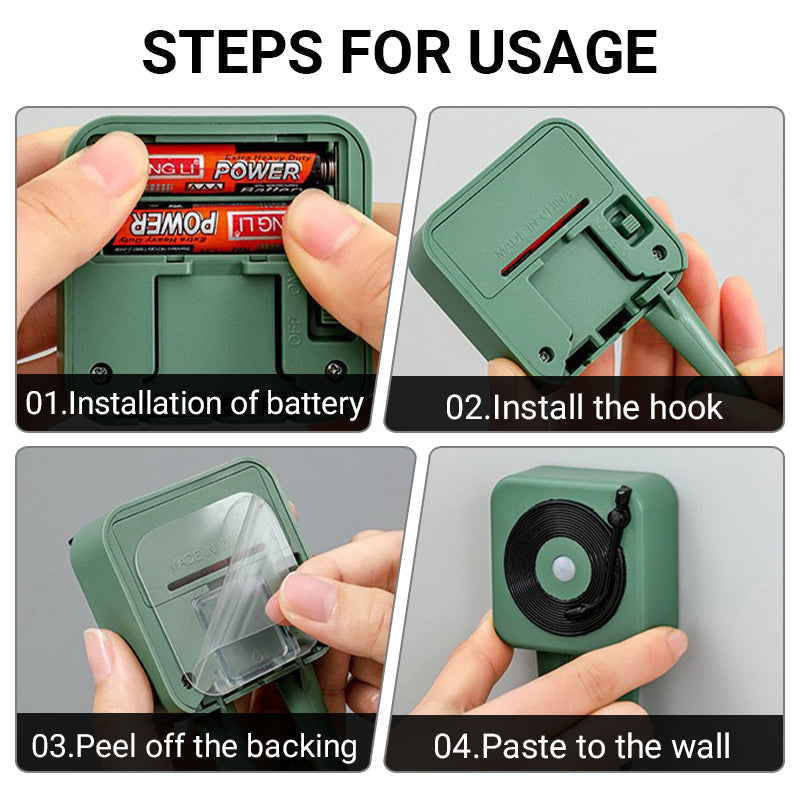 EINFACHER INSTALLATIONSPROZESS: Die Installation dieses Geräts ist ein Kinderspiel. Es wird mit klaren Anweisungen geliefert, und Sie können die Installation in nur wenigen Schritten durchführen. Das Gerät hat Haken an der Unterseite zum Aufhängen und kann mit dem mitgelieferten Kleber leicht an der Wand befestigt werden, so dass Sie es überall in Ihrem Zuhause anbringen können.