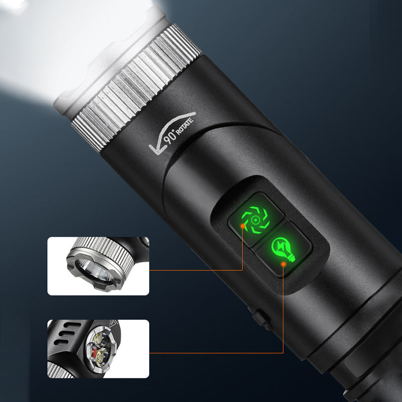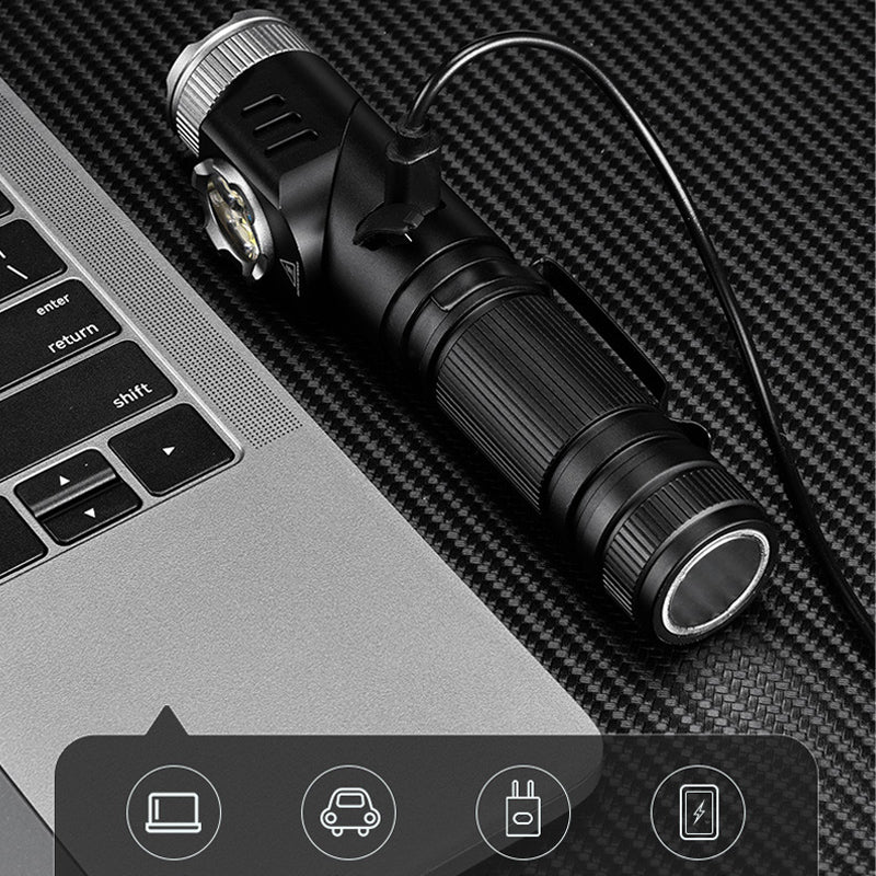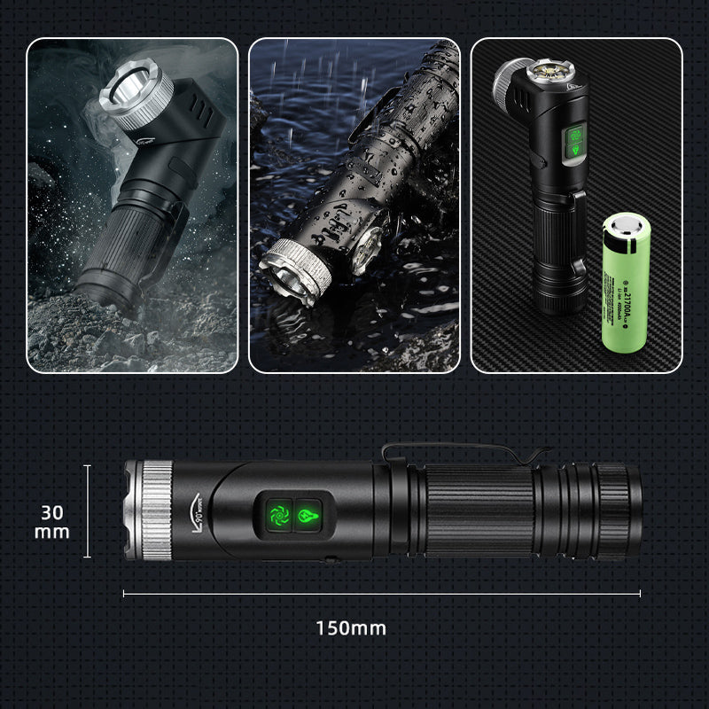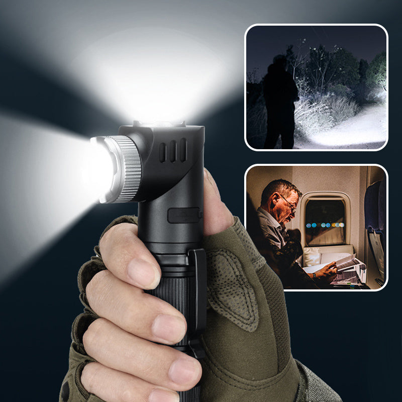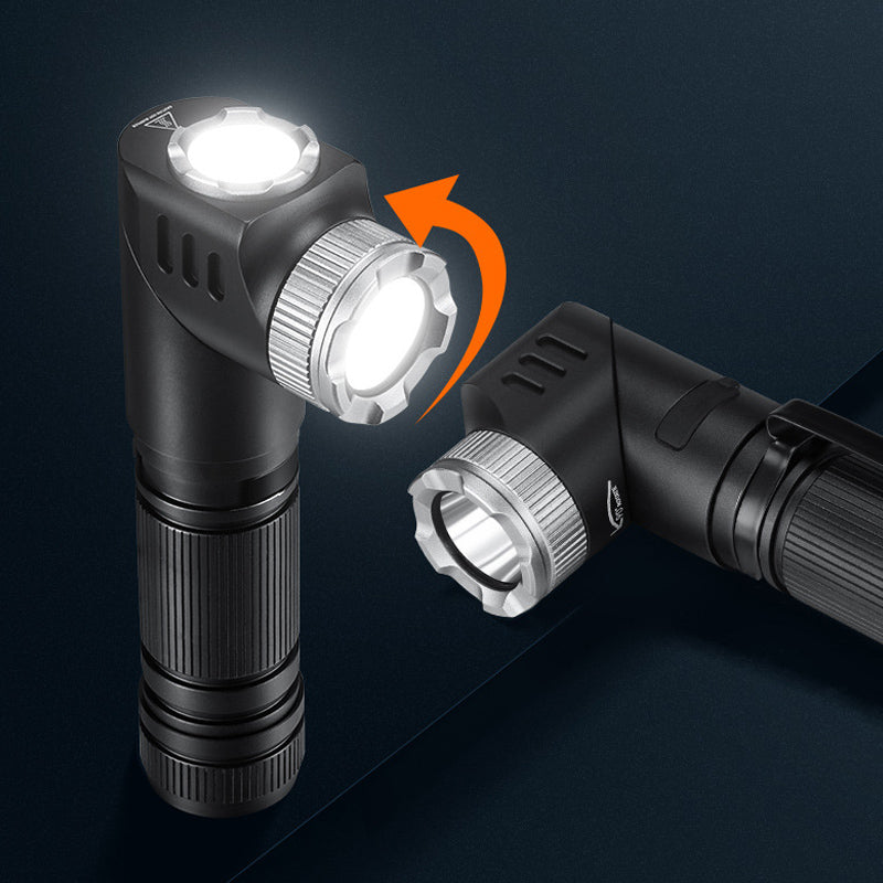 ADJUSTABLE ANGLE – The flashlight head adjusts up to 90 degrees, providing lighting angles for a range of activities such as repairs, camping, outdoor adventures, or hands-free work applications.