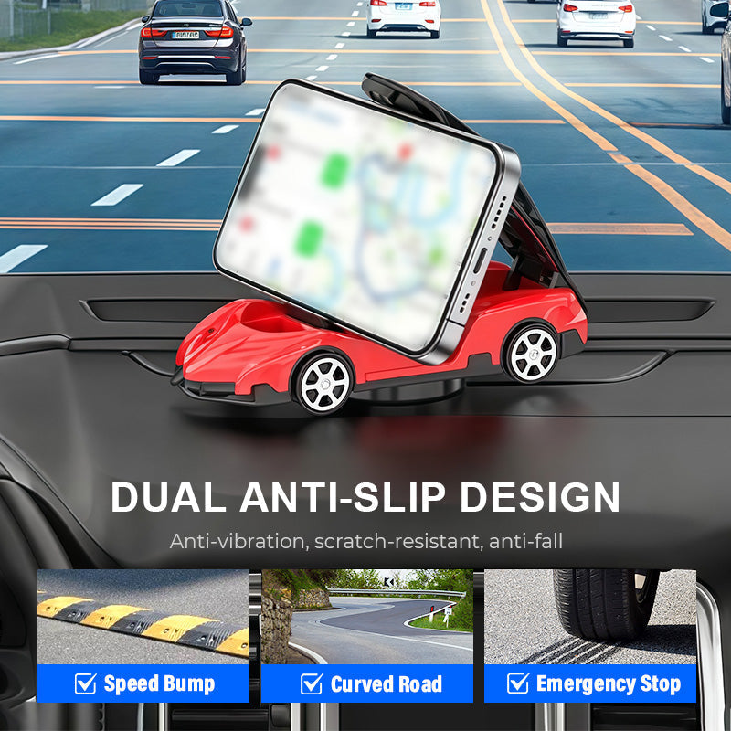SCHLANKES SPORTWAGENDESIGN â Diese Halterung verfĂŒgt ĂŒber ein stilvolles, von Sportwagen inspiriertes Design, das Ihrem Armaturenbrett oder Schreibtisch einen modernen, coolen Look verleiht und gleichzeitig Ihr Telefon sicher an seinem Platz hĂ€lt.